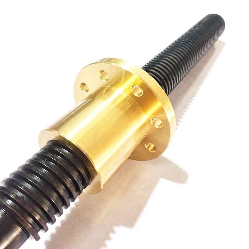 Vis trapézoïdale (Friction de glissement) : L’écrou (généralement en bronze ou en plastique technique) entre directement en contact avec le filetage de la vis et glisse. Ce processus est similaire à celui du vissage d’un boulon dans un écrou.
